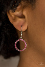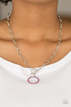 Encrusted in glittery pink rhinestones, a bubbly silver pendant swings below the collar for a colorfully casual look. Features a toggle closure.