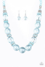 Featuring dainty silver and blue acrylic discs, a collection of oversized glassy blue beads are threaded along an invisible wire below the collar for a colorfully bubbly look. Features an adjustable clasp closure.