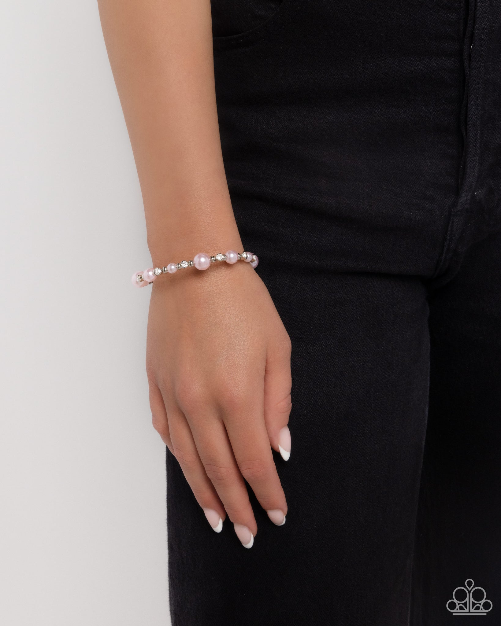 Luscious bubbly pink pearls and brilliant white rhinestones are accented with shiny silver beads threaded along a single wire to create a chicly glamorous infinity wrap bracelet.