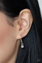 Bordered in bubbly white rhinestone encrusted petals, the center of a studded silver floral frame is dotted with an oversized blue cat's eye stone, creating a whimsical medallion at the bottom of a lengthened silver chain. A lobster clasp hangs from the bottom of the design to allow a name badge or other item to be attached. Features an adjustable clasp closure.