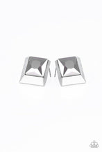 Featuring a refined square-cut, a faceted hematite rhinestone is pressed into a 3-dimensional silver frame for an edgy look. Earring attaches to a standard post fitting.