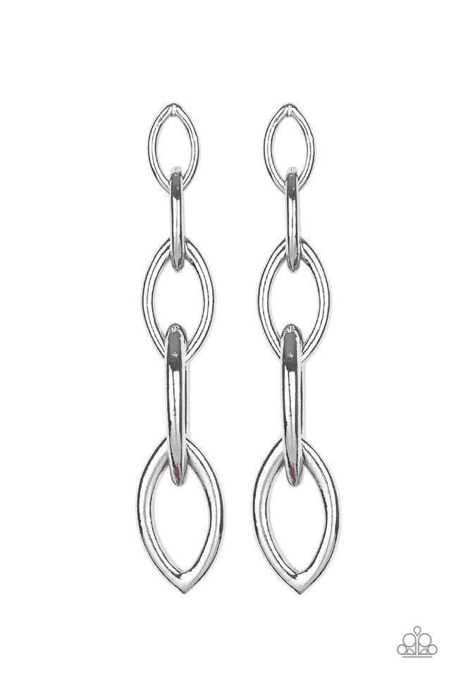 Featuring a high-sheen finish, glistening silver links gradually increase in size as they trickle from the ear for an edgy look. Earring attaches to a standard post fitting.