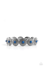 Dotted with dainty Mykonos Blue beads, studded and textured silver frames are threaded along stretchy bands around the wrist for a bubbly pop of color.