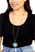 Bordered in a chain-like texture, the center of a studded silver southwestern frame is dotted with an oversized turquoise stone, creating a whimsical medallion at the bottom of a lengthened silver chain. Features an adjustable clasp closure. As the stone elements in this piece are natural, some color variation is normal.