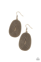 Rows of antiqued brass dotted texture radiate outward from an embossed center. The concentric lines create a rippling effect across the frame resulting in a rustic finish. Earring attaches to a standard fishhook fitting.
