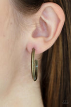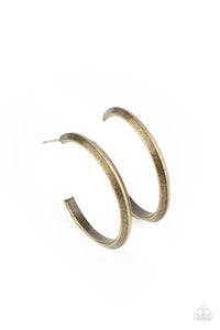 A raised spine on an antiqued brass hoop creates a dramatic finish to the simple design. Earring attaches to a standard post fitting. Hoop measures approximately 1 in diameter.