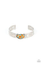 Featuring a terrazzo finish, an asymmetrical brown stone is pressed into a silver cuff embossed in geometric texture for an artisanal finish.