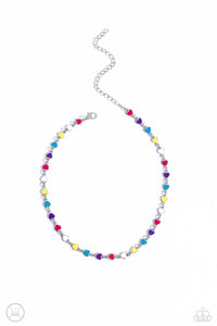 Multicolored-painted silver hearts interconnect around the collar for a simply sentimental look. Features an adjustable clasp closure.