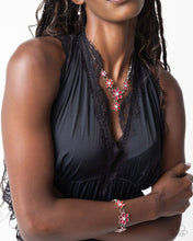 Featuring wine and red hues, a collection of white gem-centered flowers gradually increase in size, extending below the neckline from a dainty silver snake chain for a whimsical pop of color. Features an adjustable clasp closure. Sold as one individual necklace. Includes one pair of matching earrings. Featuring wine and red hues, a collection of white gem-centered flowers gradually increase in size, extending below the neckline from a dainty silver snake chain for a whimsical pop of color. Features an adjustable clasp closure. Sold as one individual bracelet.