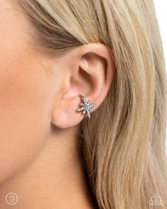 Featuring glistening white rhinestones, a three-dimensional silver star shoots along a thin silver band for a stellar one-size-fits-all cuff.