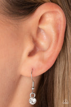 A heart-shaped pendant in a silver finish is anchored between two strands of delicate chain in the same reflective finish. The interior of the heart is filled with glittery white rhinestones, inviting onlookers to admire its unflinching sparkle. Features an adjustable clasp closure.