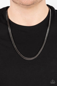 Rows of angular gunmetal links stack and interlock into a bold 3-dimensional chain, resulting in an intense statement piece across the chest. Features an adjustable clasp closure.