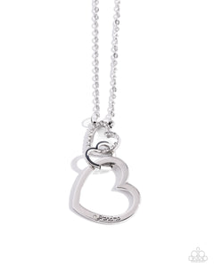 A silver heart engraved with the word "Grandma," dangles from two smaller hearts at the bottom of a lengthened silver chain. The first heart is accented with sparkly white rhinestones creating an affectionately sentimental pendant. Features an adjustable clasp closure.