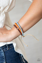 Featuring brown, blue, and Amberglow hues, silver beaded hemp-like cording wraps into three colorful strands around the wrist for a seasonal flair. Features an adjustable sliding knot closure. Sold as one individual bracelet.