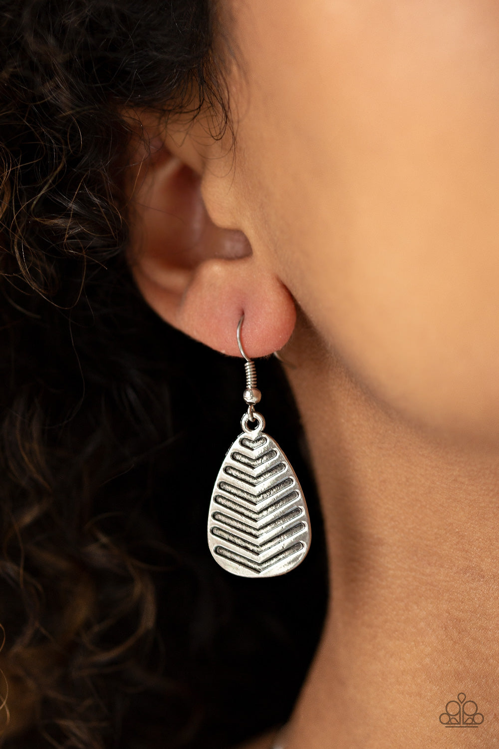 Stamped in an assortment of geometric patterns, an oversized silver half-moon pendant swings below the collar for a bold tribal style. Features an adjustable clasp closure.