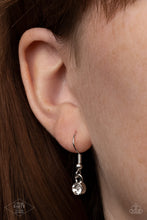 Infused with a pair of glassy white rhinestones, an oversized collection of marquise and teardrop iridescent rhinestones drips from the bottom of a bowing silver bar, coalescing into a sassy statement piece below the collar. Features an adjustable clasp closure.
