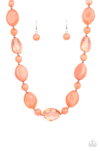 Featuring glassy, opaque, and solid finishes, an array of Burnt Coral faux stone beads and dainty silver beads are threaded along an invisible wire below the collar, creating a colorful statement piece. Features an adjustable clasp closure.