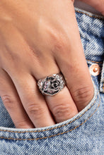 Dotted in dainty pink rhinestones, a leafy silver rosebud blooms across a plain silver band for an enchanting floral fashion. Features a dainty stretchy band for a flexible fit.