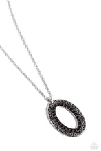 Embossed in vine-like filigree, the center of an antiqued silver oval is encrusted in a glittery ring of sparkly purple rhinestones, resulting in a seasonal pendant at the bottom of an extended silver chain. Features an adjustable clasp closure.