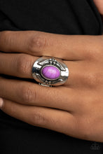 Flanked with leafy floral accents, an oval purple stone dots the center of a rustic silver plate that folds around the finger for a simply seasonal look. Features a stretchy band for a flexible fit.