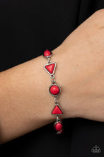 Encased in rustic silver frames, an earthy assortment of triangular, oval, and round red stones delicately links into an artisan-inspired centerpiece around the wrist. Features an adjustable clasp closure.
