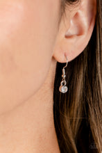 A dramatically oversized, emerald-cut red gem shimmers as it swings from the bottom of a long silver chain. Dainty white rhinestones create an airy frame that wrap around the reflective centerpiece, scattering light in every direction in a blinding finish. Features an adjustable clasp closure.
