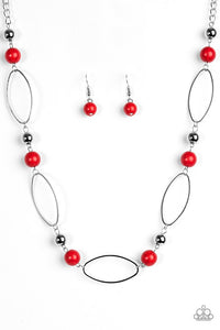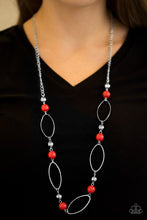 Fiery red stones and classic silver beads join airy silver hoops along a silver chain for a seasonal look. Features an adjustable clasp closure.