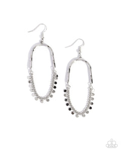 Suspended from a subtly hammered and twisted upside-down fitting, dainty silver discs swing along a classic chain for a frenetic fringe. Earring attaches to a standard fishhook fitting.