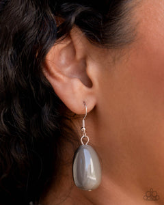 Infused along an invisible string, a collection of abstract chunky white beads with speckles of silver alternate with solitaire abstract gunmetal beads with a gorgeous glazed finish, round Ultimate Gray pearls, silver beads, doubled layers of thick textured silver rings, and defaced silver beads, creating an eye-catching, engaging display along the neckline. Features an adjustable clasp closure.
