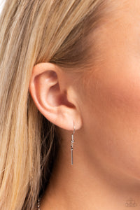 Featuring a cascade of dainty silver bars, a dainty silver chain links with a solitaire chain, creating a monochromatic display that playfully extends below the collar. Features an adjustable clasp closure.