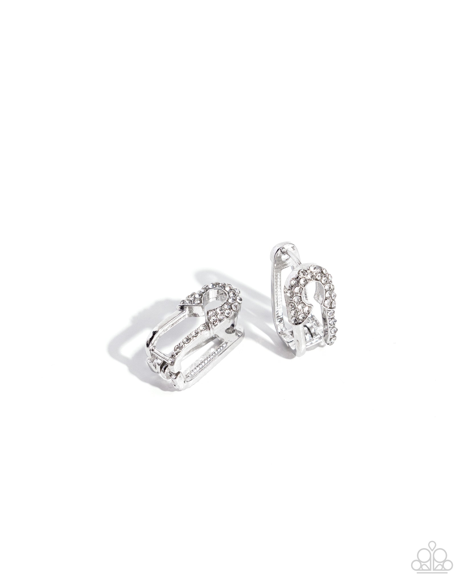 Safety Pin Secret - White Earrings - Paparazzi Accessories