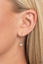 Featuring a white gem ring, a silver hoop is threaded through the center of a thick silver fitting. The dizzying pendant swings from the bottom of a lengthened silver snake chain for a dramatic, show-stopping look. Features an adjustable clasp closure.