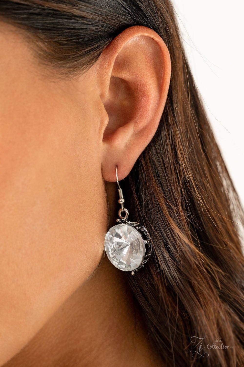 Varying in size and shape, a dramatic collision of oversized white rhinestones connect into an unapologetically glamorous statement piece below the collar. Attached to chunky silver links, the breathtaking display of clustered gems radiates confidence. Features an adjustable clasp closure.