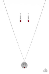 Dotted with a dainty red rhinestone, a shimmery disc is stamped in the phrase, "American girl", for a whimsical look below the collar. Features an adjustable clasp closure.