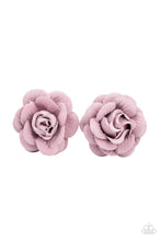 Featuring lifelike textures, papery purple petals delicately gather into a pair of charming rosebuds. Each flower features a standard hair clip on the back.