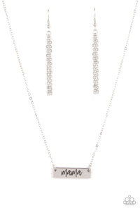 Stamped in the word, "Mama," a rectangular silver plate is suspended below the collar by a dainty silver chain, creating a whimsy inspirational pendant. Features an adjustable clasp closure.