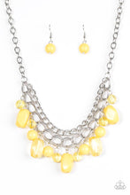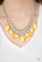Featuring glassy and polished finishes, round and asymmetrical yellow beads trickle from the bottom of a double-linked silver chain. An additional silver chain is layered above the summery beading for a seasonal finish. Features an adjustable clasp closure.