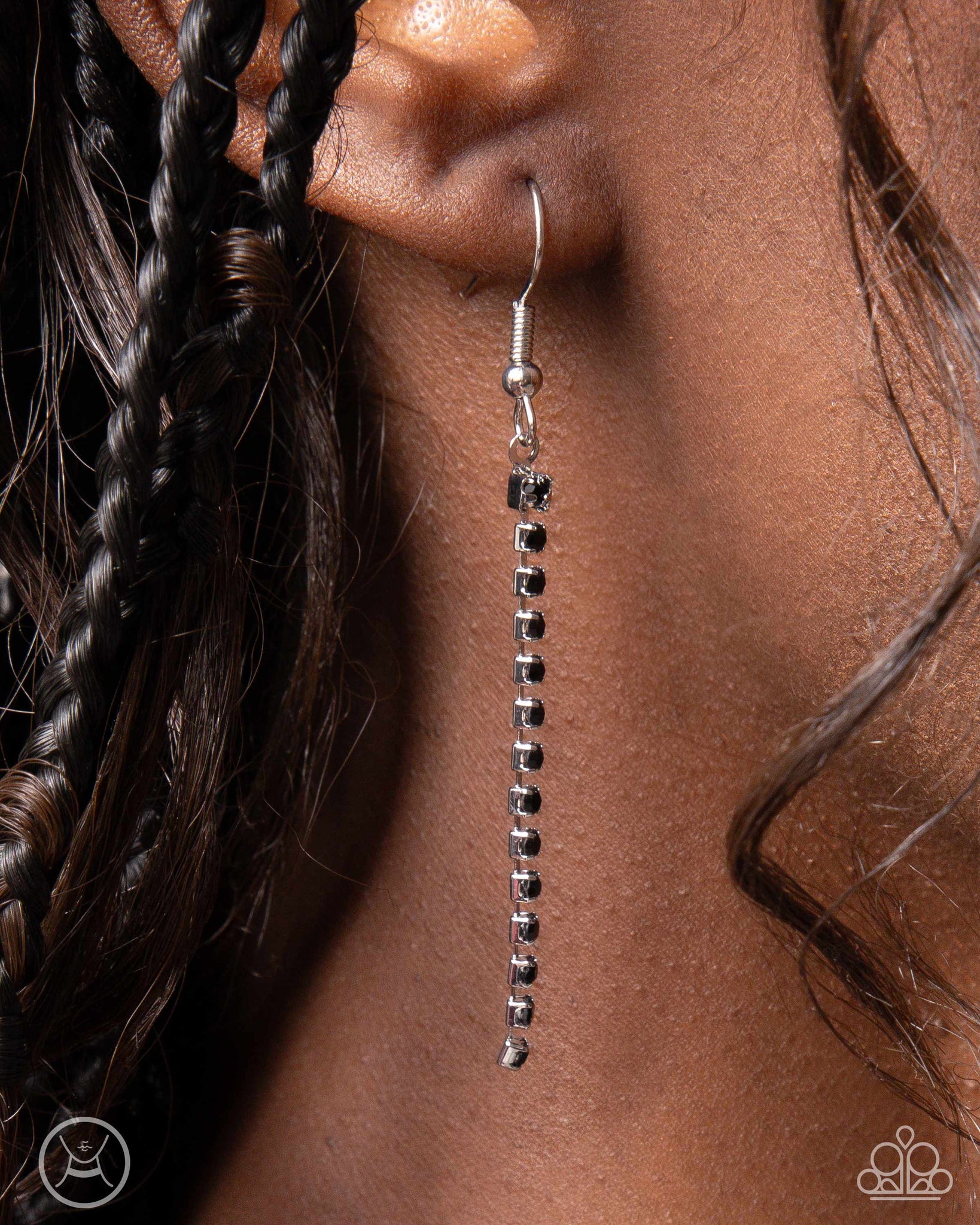 A double-stranded display of glistening black rhinestones in silver square fittings cascades around the wrist to a black rhinestone and gem-embellished bow that loops and curls for a regal display. Features an adjustable clasp closure.