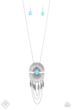 A fringe of antiqued silver feathers and shimmery silver chains dangles from the bottom of a stacked silver frame fanning with striking texture. A smooth turquoise stone dots the tribal inspired pendant for an earthy finish. Features an adjustable clasp closure.