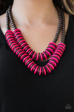.Brown wooden beads give way to rows of pink and brown wooden discs, creating colorful layers for a summery look. Features a button-loop closure.