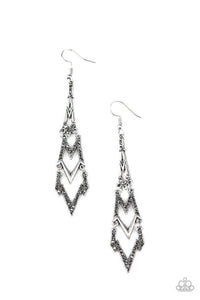 Featuring edgy zigzag shapes, plain silver and hematite rhinestone encrusted bars stack into an electrifying lure. Earring attaches to a standard fishhook fitting.