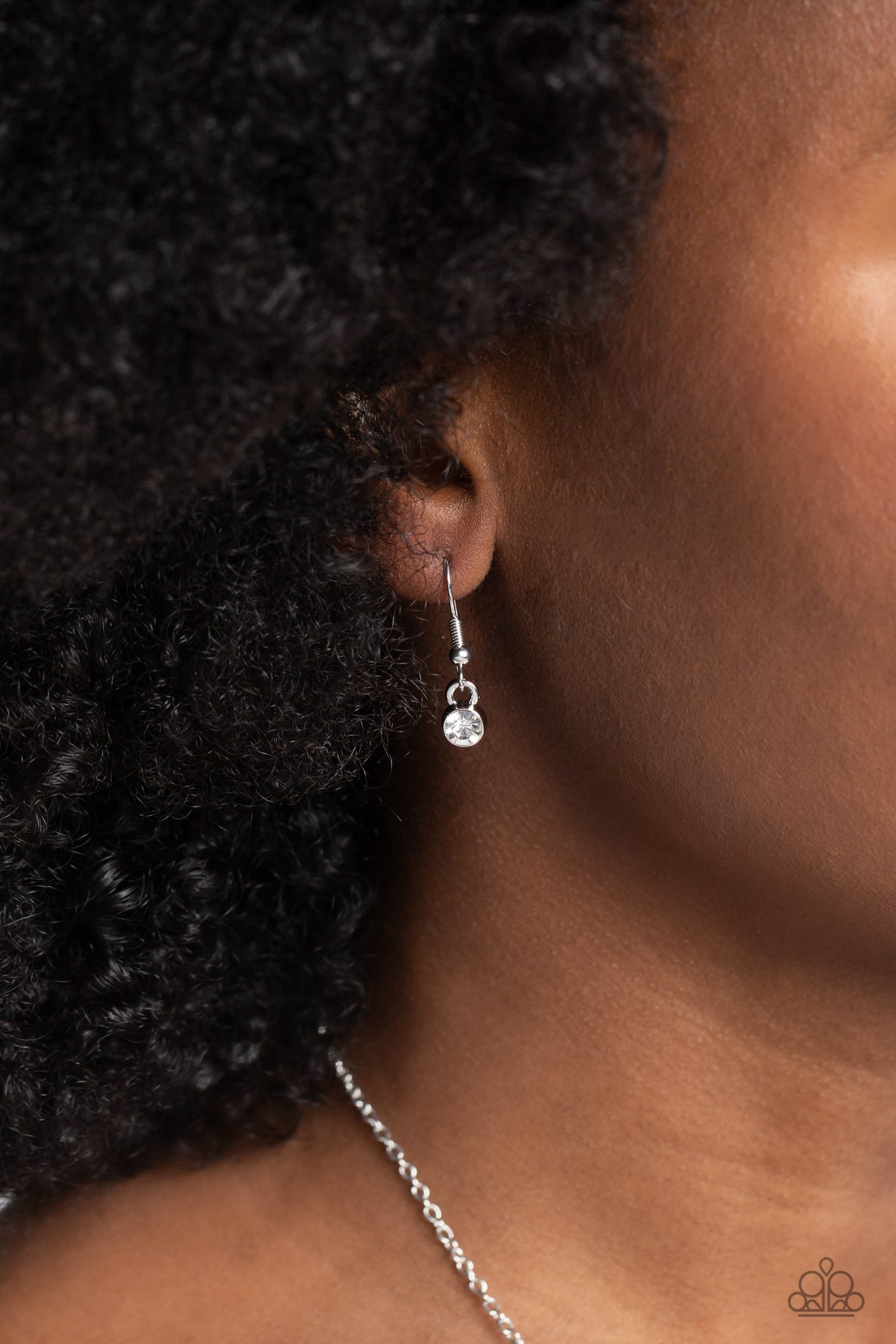 Purple rhinestone petals bloom from the center of a white rhinestone center, creating a sparkling flower that glistens atop a dainty silver chain. Features an adjustable clasp closure.