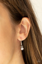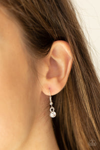 An oversized white gem is pressed into a sleek silver fitting dipped in dainty white rhinestones, creating a glamorous pendant at the bottom of a dainty silver chain. Features an adjustable clasp closure.