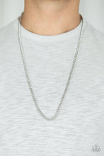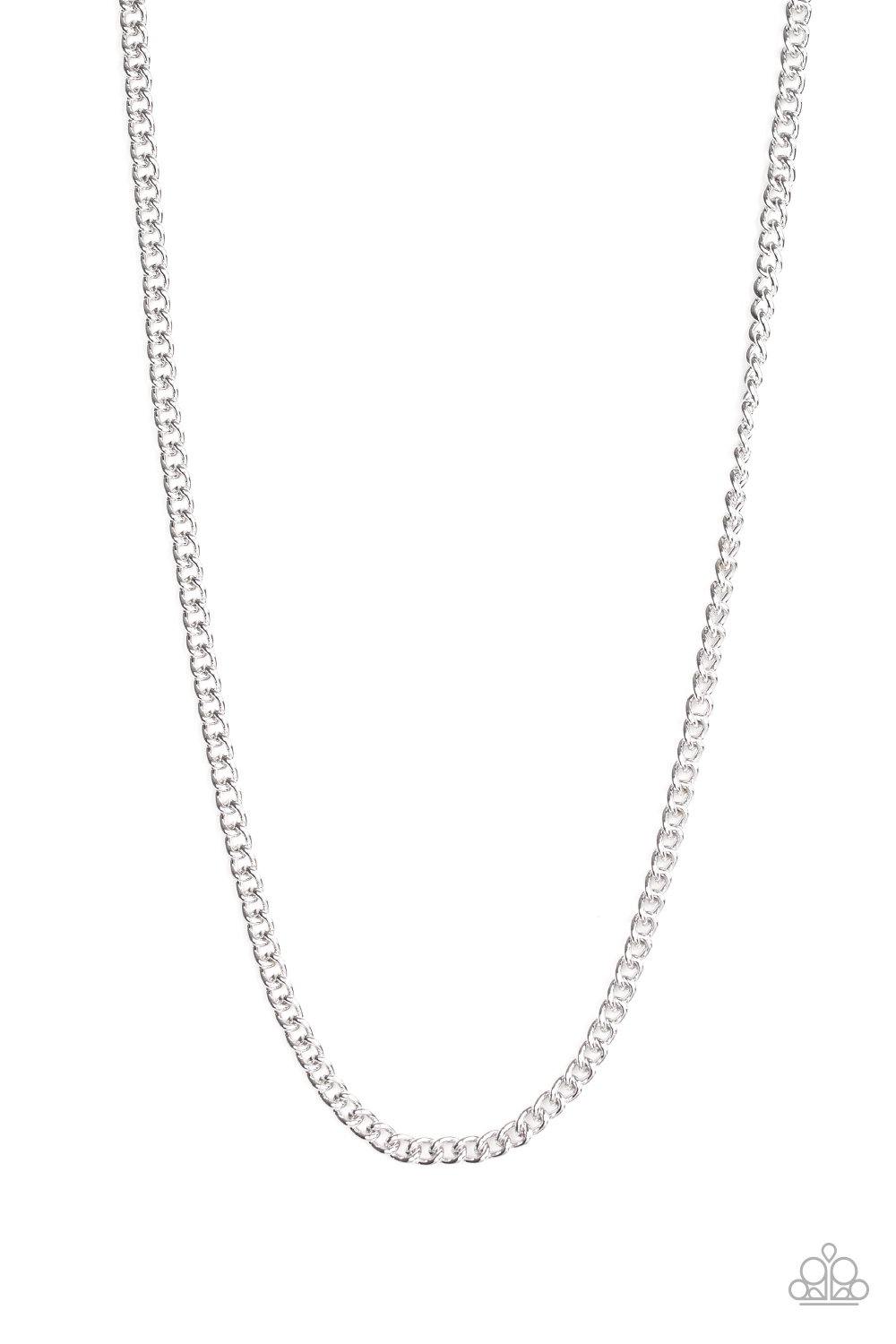 Brushed in a shiny finish, a classic silver cable chain drapes across the chest for a casual look. Features an adjustable clasp closure.