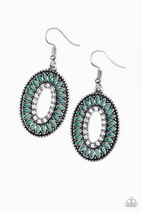 Refreshing green petals bloom from a glittery white rhinestone center, creating a fabulous frame. Earring attaches to a standard fishhook fitting.