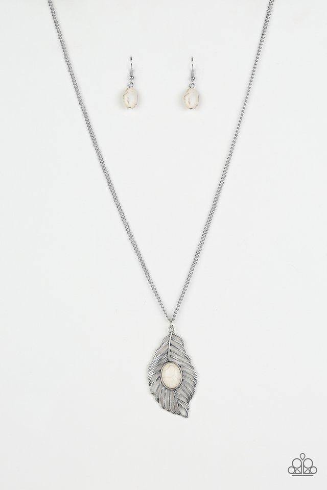 A refreshing white stone is pressed into the center of an airy silver feather rippling with lifelike textures. The whimsical pendant swings from the bottom of a lengthened chain for a seasonal finish. Features an adjustable clasp closure.