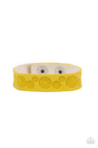 Stamped in a whimsical daisy pattern, a dainty Illuminating leather band wraps around the wrist for a seasonal flair. Features an adjustable snap closure.