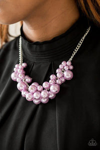 Varying in size, bubbly purple pearls cascade from the bottom of a bold silver chain, creating a dramatically clustered fringe below the collar. Features an adjustable clasp closure.