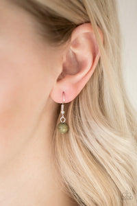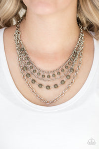 Featuring earthy green stone accents, mismatched silver chains layer below the collar for a seasonal look. Features an adjustable clasp closure.