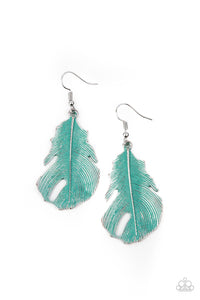 Brushed in a patina finish, a lifelike silver feather swings from the ear for a free-spirited fashion. Earring attaches to a standard fishhook fitting.
